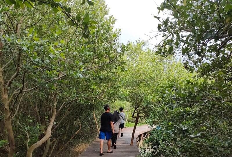 Selain bermain air atau pasir di pantainya, kamu juga bisa lo berjalan kaki menyusuri hutan mangrove yang rindang. Menarik banget ya untuk pantai dengan tiket masuk murah meriah.