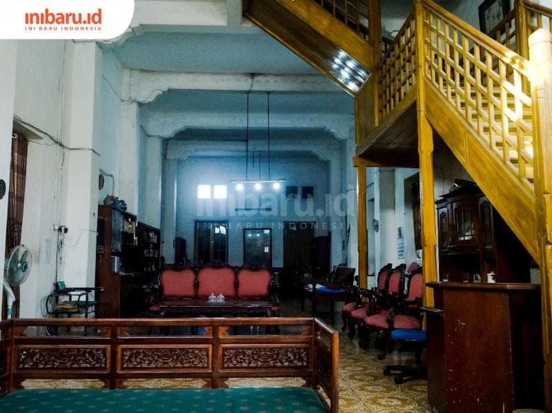 Ketika duduk di ruang tamunya, tampak ruangan yang luas. Cukup klasik. Gaya bangunan lawasnya masih bertahan. Dinding-dindingnya pun masih baik, nggak ada yang rompal. Tangga untuk menuju lantai dua pun masih tampak asli. Yang berubah barangkali hanya beberapa kusen pintu dan jendela.