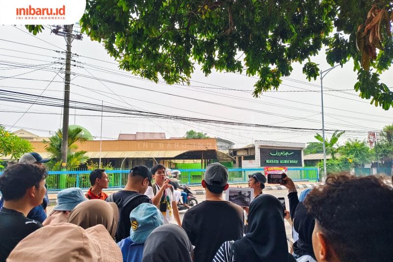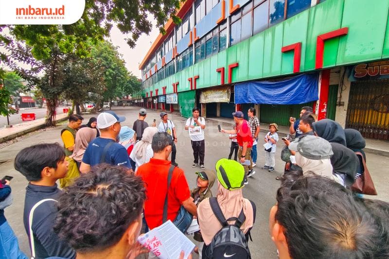 Dua pemandu, Nova David dan Hidayat, berdiri di depan. Dengan mikrofon sebagai pelantang, keduanya silih berganti menceritakan sepetik ingatan dan sedikit catatan kecil sejarah bangunan ini. Beberapa orang tampak khusyuk menyimak, sedangkan sisanya sibuk mengarahkan kamera ke berbagai sudut gedung.