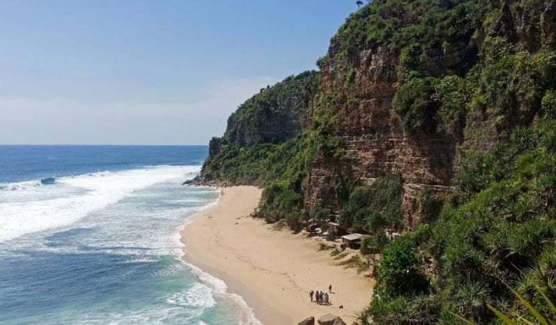 Kalau kamu masuk dari Jalur Jalan Lintas Selatan (JJLS) jaraknya sekitar 5 kilometer. Bahkan, setelah memarkirkan mobil atau sepeda motor di tempat parkir, kamu masih harus melakukan trekking sekitar 15 menit dengan jalur yang cukup menantang. Tapi, semua perjuangan yang harus dilalui untuk mencapai pantai ini bakal terbayar luas, kok, Millens.