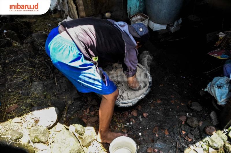 Mengaduk serbuk jati. (Inibaru.id/ Audrian F)