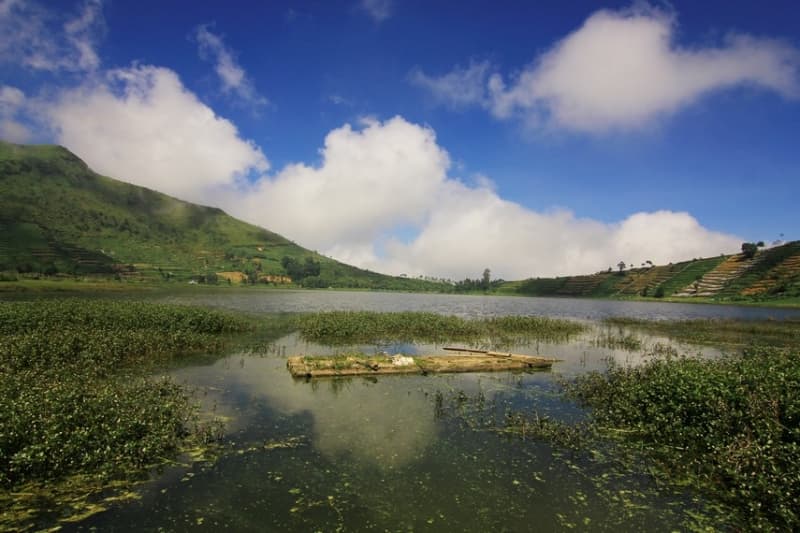 Ya, di atas ketinggian kawasan Dieng di Jawa Tengah, kawasan berjuluk Negeri di Atas Awan punya satu lagi destinasi yang tak bisa diabaikan siapa pun yang demen melancong. Pasalnya, kini pewisata bisa menikmati sensasi unik mengayuh kayak di Telaga Merdada.Telaga itu berada di sebelah barat Pegunungan Dieng, tepatnya di Desa Karangtengah, Kecamatan Batur, Banjarnegara, Jawa Tengah.