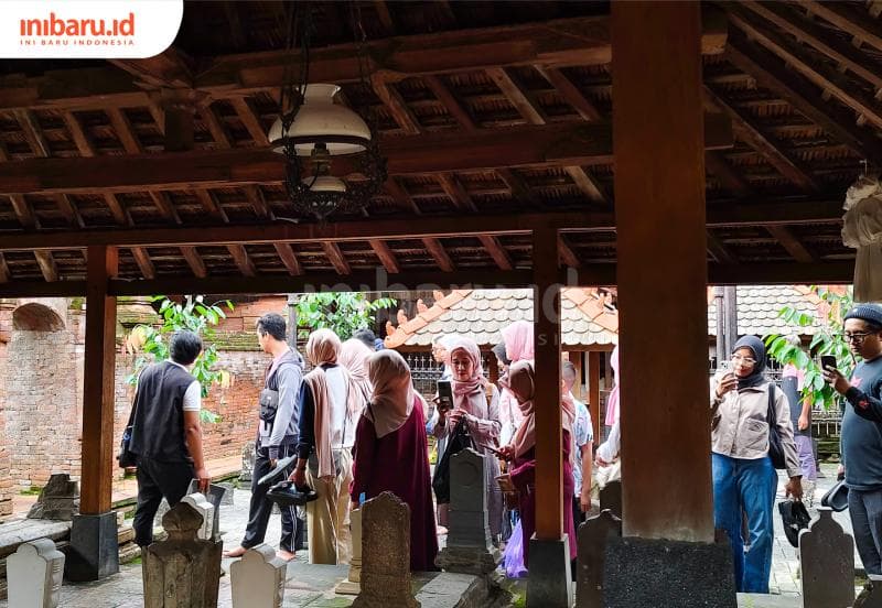 Suasana penuh penjelajahan saat peserta Walking Tour Menjelajahi Kauman Menara saat melihat tokoh-tokoh yang ada di komplek makan Sunan Kudus Menara (Inibaru.id/Imam Khanafi)
