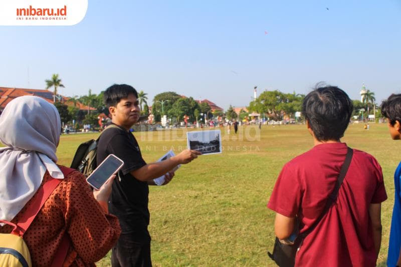 Nova memperlihatkan foto lama di Alun-alun Jepara Walking Tour: Aloon-aloon en Omstreken (Inibaru.id/Imam Khanafi)