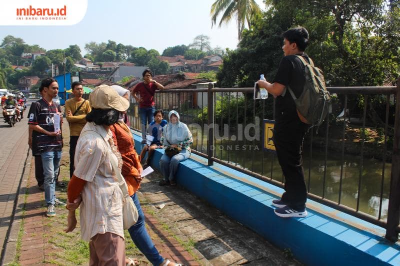 Peserta walking tour sedang mendengarkan cerita Nova, tentang pecinan Jepara dan Loj VOC. (Inibaru.id/Imam Khanafi)