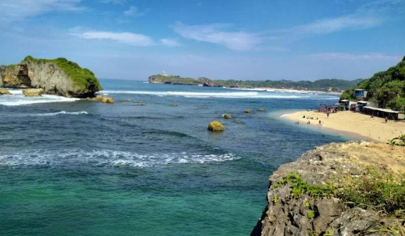 Kalau kamu suka tantangan kecil, coba deh naik ke tebing karang di sisi pantai. Cukup bayar Rp2.000, kamu bisa naik lewat tangga dan menikmati panorama laut dari ketinggian. Dari sana, kamu juga bisa melihat Pantai Sadranan dan Sundak yang berada di sisi kanan dan kiri. Pemandangan sunset dari atas sini juga nggak main-main indahnya.