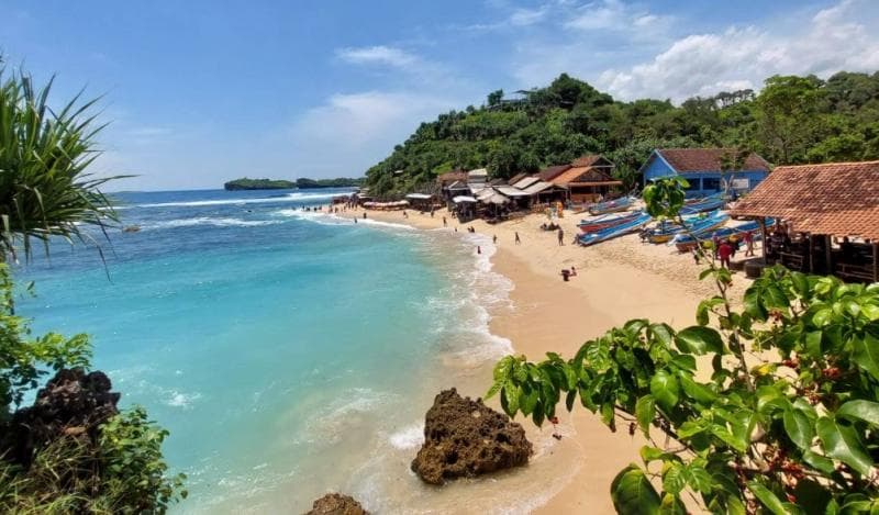 Satu hal yang bikin pantai ini istimewa adalah pemandangannya. Lautnya berwarna biru kehijauan yang jernih, berpadu dengan pasir putih dan perahu-perahu nelayan warna-warni yang terparkir rapi di tepi pantai. Nggak sedikit pengunjung yang sengaja datang untuk berburu foto karena spot-nya memang “instagramable” banget.