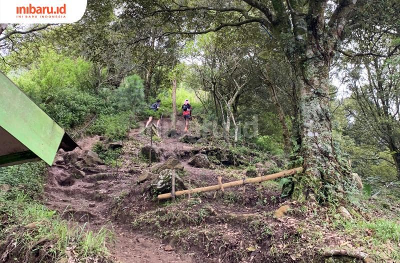 Kawasan keramat itu menjadi trek "nyaman di kaki" terakhir sebelum memasuki jalur yang bagi saya masuk kategori ekstrem. Tanjakan dengan kemiringan tajam, berbatu, dan licin. Di beberapa titik, trek menanjak ini bahkan dilengkapi tali pengaman untuk membantu pendaki naik.