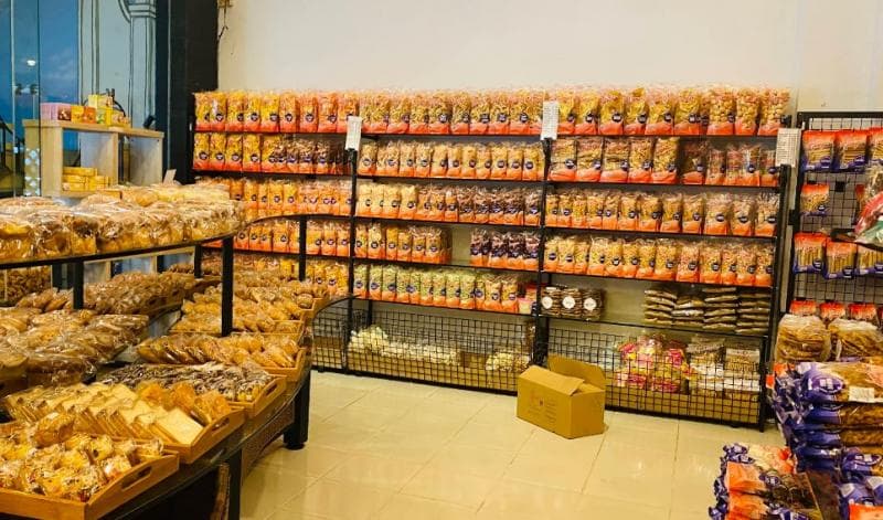 Di toko ini, kamu bisa menjajal banyak jenis kudapan seperti roti kecik, bagelen, ampyang jahe, dan cendol keju, hingga aneka keripik dan donat kering. Selain itu, ada juga sejumlah lauk kering seperti abon dan srundeng.