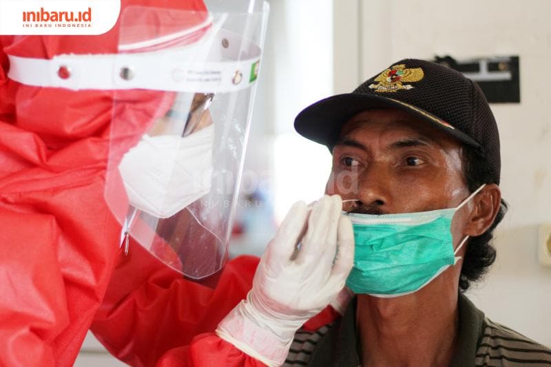 Seorang warga melakukan rapid test antigen di area Bandara Internasional Jenderal Ahmad Yani Semarang, Jawa Tengah, Senin (28/12/2020). (Inibaru.id/ Triawanda Tirta Aditya)