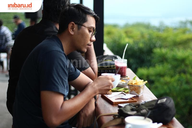 Pengunjung menikmati kopi di Kampung Kopi Banaran, Kabupaten Semarang, Kamis (21/1/2021). Resto ini mewajibkan pengunjung menaati protokol kesehatan 3M. (Inibaru.id/ Triawanda Tirta Aditya)