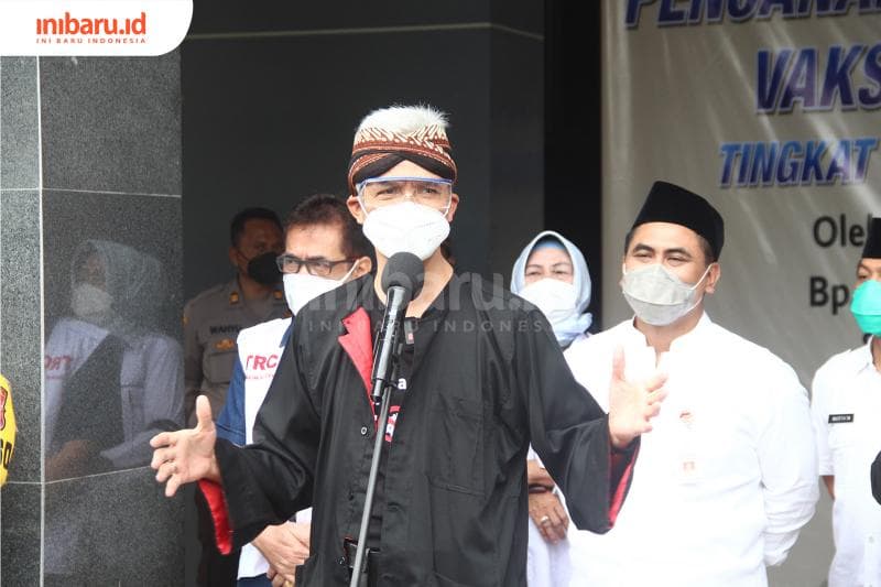 Gubernur Jawa Tengah Ganjar Pranowo memberikan penjelasan mengenai vaksinasi Covid-19 di Semarang. (Inibaru.id/Triawanda Tirta Aditya)