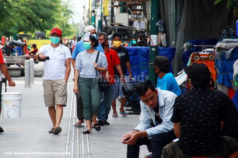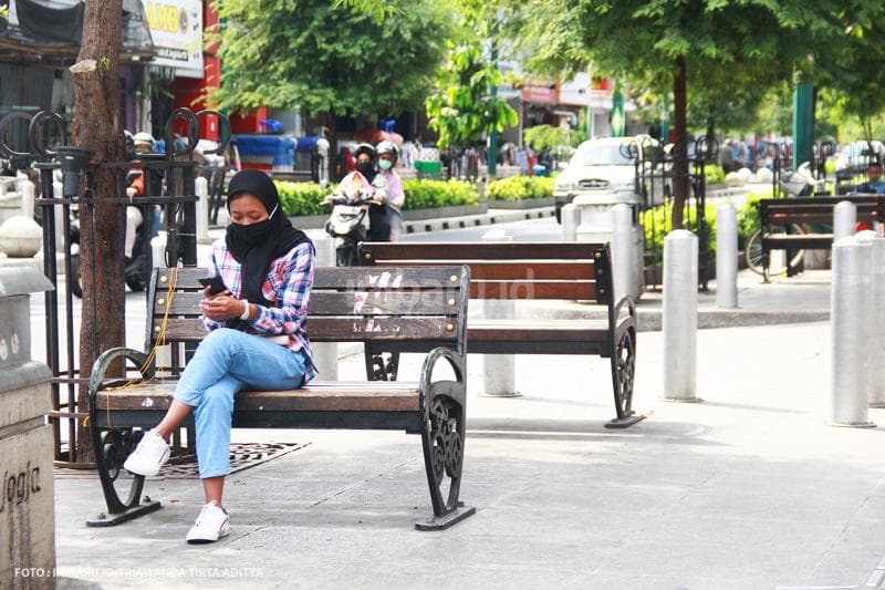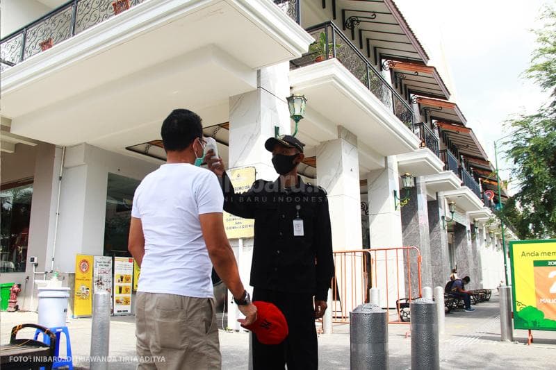 Tempat yang dulu menjadi lautan manusia, lalu sepi, kini perlahan mulai ramai lagi. Namun, nggak semua orang bisa keluar-masuk kawasan Malioboro. Memakai masker dan pengecekan suhu menjadi mutlak bagi siapa pun yang mau berkunjung ke sini.