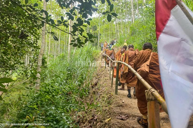 Selepas beristirahat sekitar 40 menitan di Vihara Buddhadipa, para biksu melanjutkan perjalanan menelusuri jalan setapak melewati hutan dan sungai Kaligarang menuju Vihara Buddha 2500 Jayanti di Bukit Wungkal Kasap di Pudakpayung, Kecamatan Banyumanik.