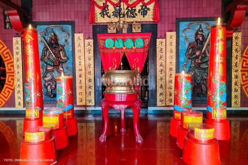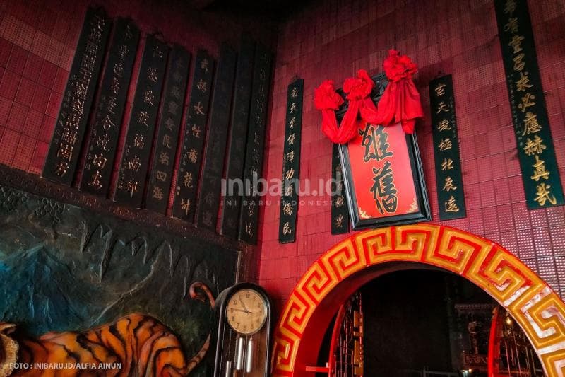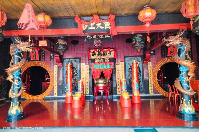 "Klenteng ini punya lima Kimsin (patung dewa); yaitu Kongco atau Dewa Hian Thian Siang Tee sebagai tuan rumah, lalu Kongco Kwan Tee Kun dan Khong Hu Cu," terangnya. "Selain itu ada Sang Buddha Utama di bagian tengah dan Makco (Dewi) Kwan Im di sisi kiri."
