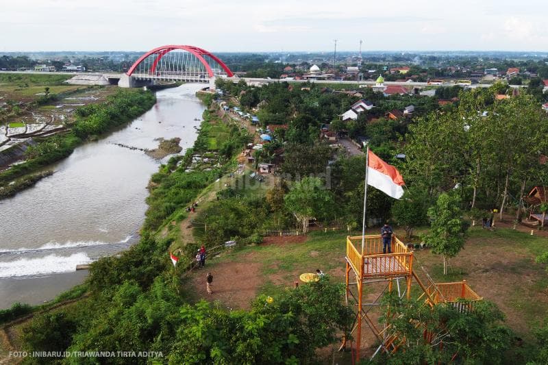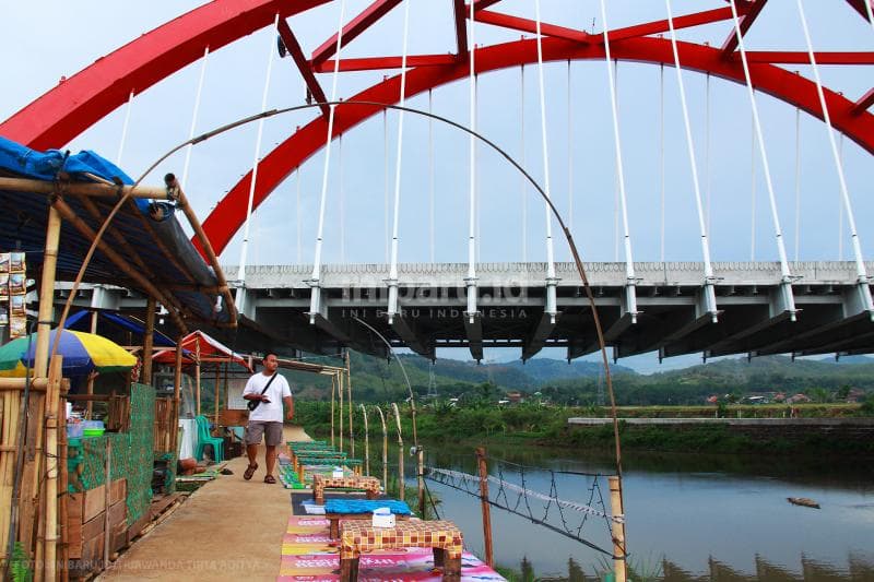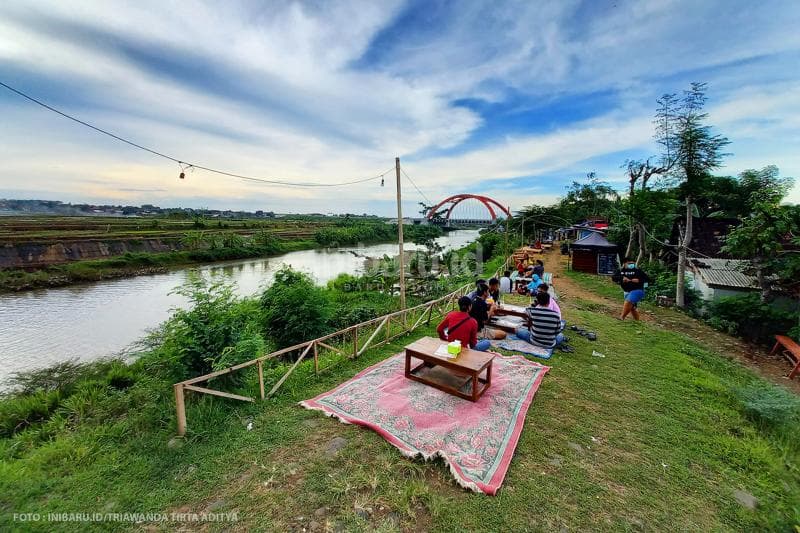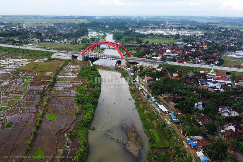 Inibaru.id - Jembatan Merah Kalikuto yang tampak mencolok nggak cuman jadi pajangan siapa pun yang melintas di ruas jalur tol Batang-Semarang. Berlokasi di perbatasan Kabupaten Kendal-Kabupaten Batang, Jawa Tengah, warga sekitar memanfaatkan jembatan ikonik itu untuk memutar roda ekonomi.