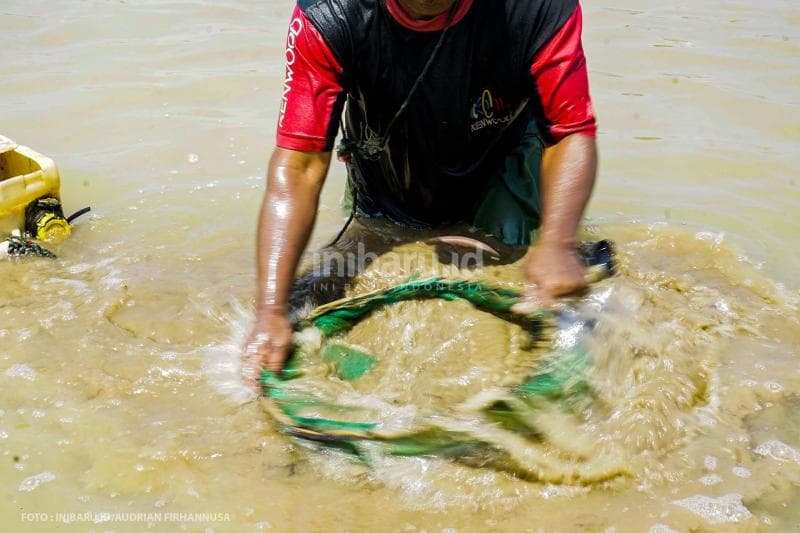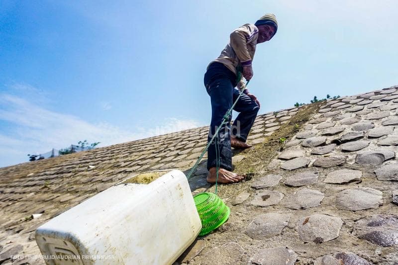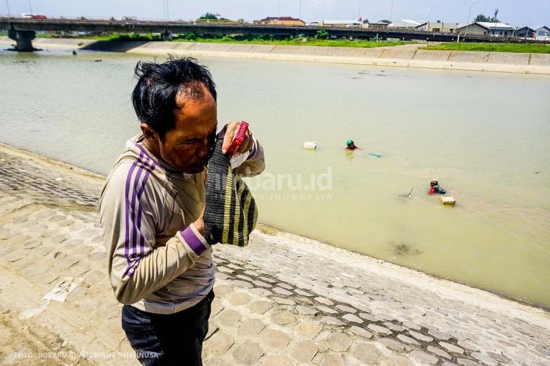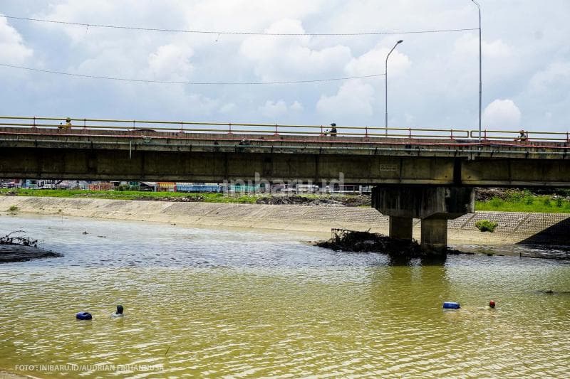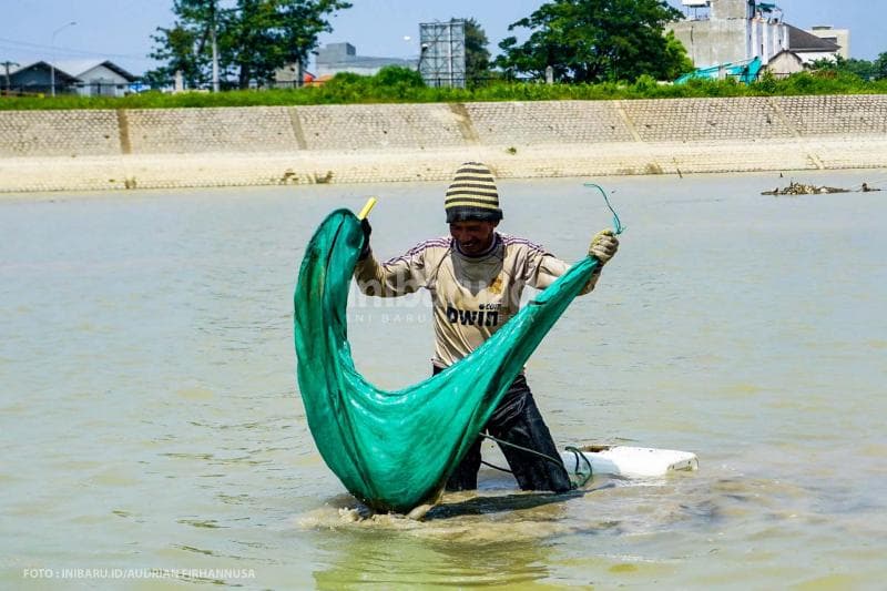 Inibaru.id - Hanya kepala-kepala dengan pelindung kepala yang terlihat dari jembatan. Jika diperhatikan lebih saksama, badan mereka terbenam di air berlumpur di Sungai Banjir Kanal Timur (BKT), Kota Semarang. Merekalah para pendulang cacing sutra.