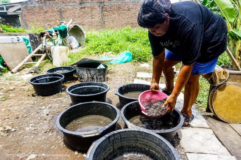 “Cacing akan mengambang, sedangkan lumpurnya tenggelam,” terang lelaki yang tinggal di Jalan Banjir Kanal, Kecamatan Gayamsari, Kota Semarang, tersebut. Sejumlah pendulang cacing yang menjadi rekan kerjanya juga berasal dari daerah tersebut.