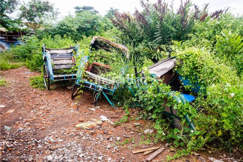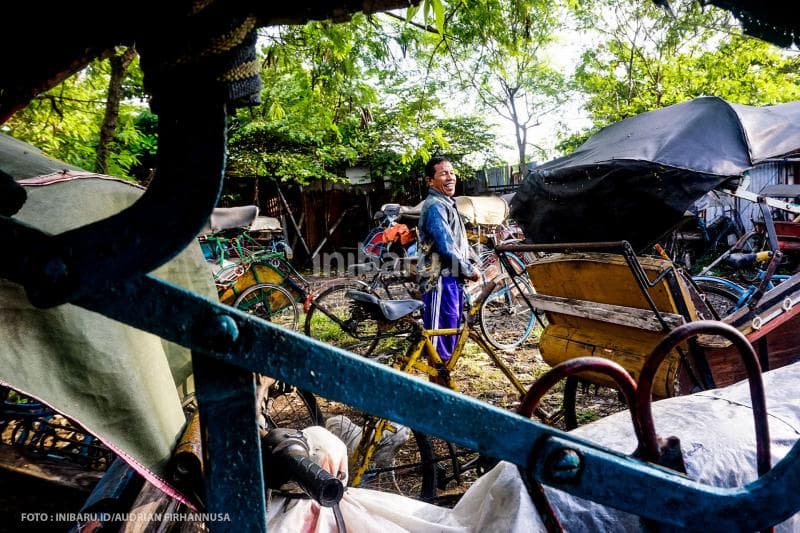 Di tempat Mulyadi, setidaknya ada 30 becak yang siap pakai. Selebihnya hanya becak bekas yang sudah rusak, nggak terpakai, dan dimakan semak belukar.