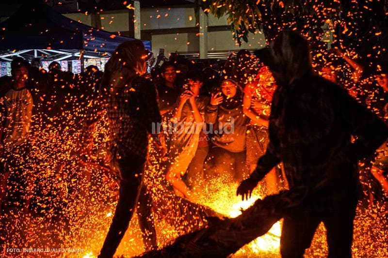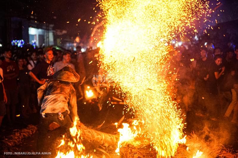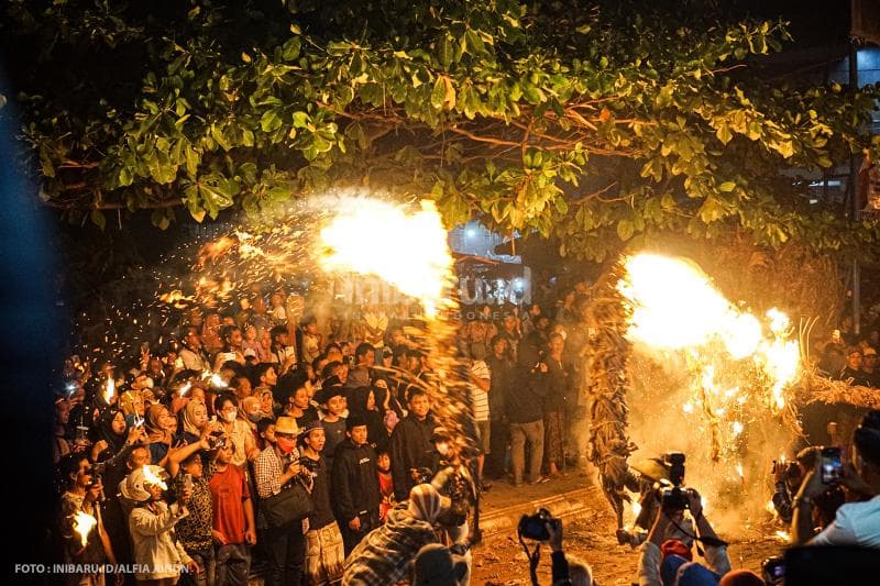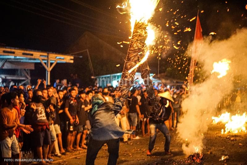 Inibaru.id - Sebanyak 40 pemegang obor telah mengambil posisi masing-masing, menjadi dua kubu, bersiap memulai "peperangan", duel satu lawan satu. Api berkobar di mana-mana. Memanas dan menyala merah, seolah-olah tempat tersebut benar-benar merupakan medan laga.