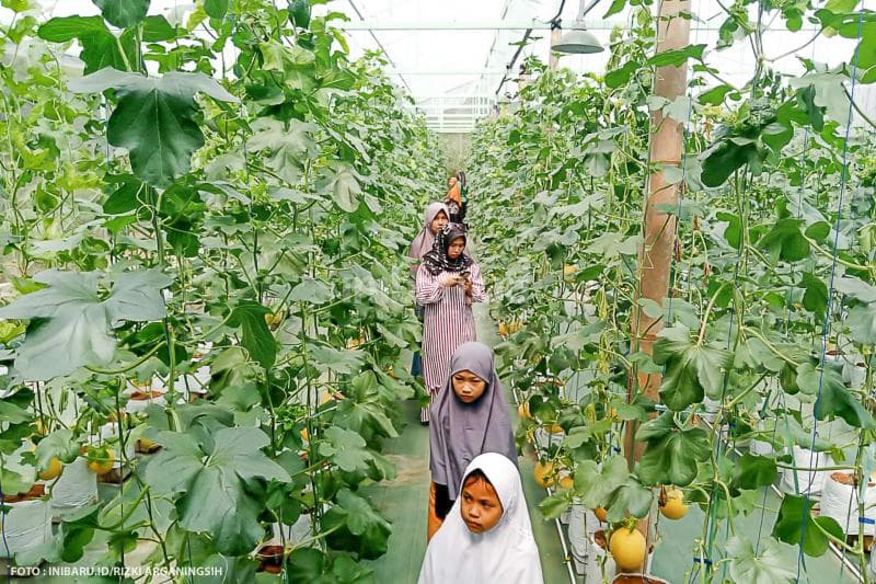 Pengunjung Mellizo Hydro Farm memang rata-rata orang yang pengin belajar tentang penanaman melon hidroponik yang terbilang unik ini. Saat kami datang, saya juga melihat rombongan anak TK yang tengah berwisata ke sini. Berdiri di tengah-tengah mereka adalah Aristya, sang pemilik kebun melon.