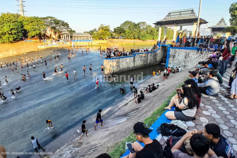 Yap, kamu nggak salah baca! Jika Jakarta punya pusat tongkrongan anak muda yang viral di medsos bernama Citayam Fashion Week, hari-hari ini Semarang juga memiliki cerita serupa, yakni Surfing di Banjir Kanal. Hampir tiap sore, ratusan anak muda akan berada di sini untuk berselancar.