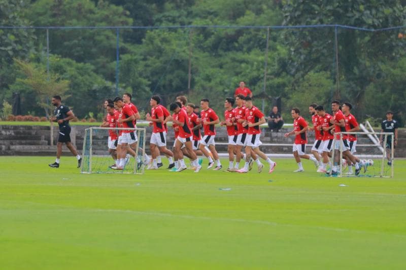Timnas Indonesia berlatih sebelum menjalani pertandingan melawan Tiongkok. (Antara/Bayu Pratama)