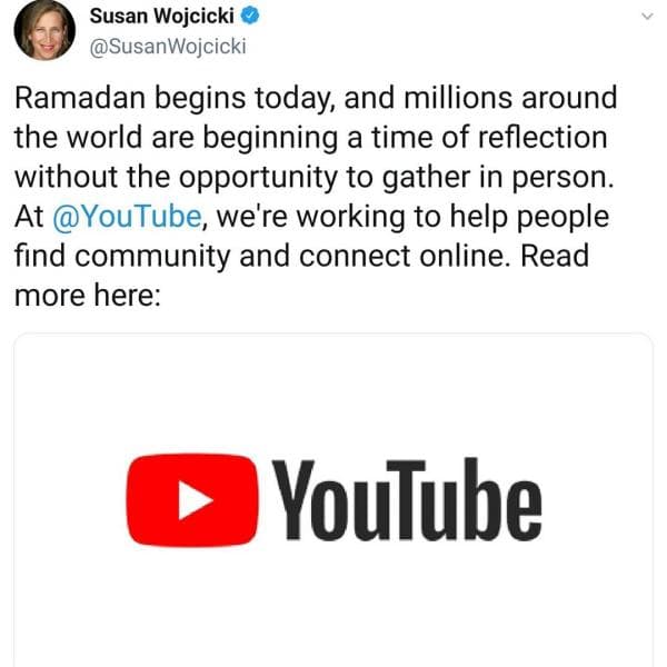 “Baim Wong, aktor terkenal di Indonesia dan istrinya Paula, bergabung dengan keluarga Muslim lainnya di YouTube di Indonesia untuk berbagi konten harian seputar sahur, buka puasa, dan kegiatan keluarga lainnya saat mereka #StayHome,” tulis Susan Wojcicki.