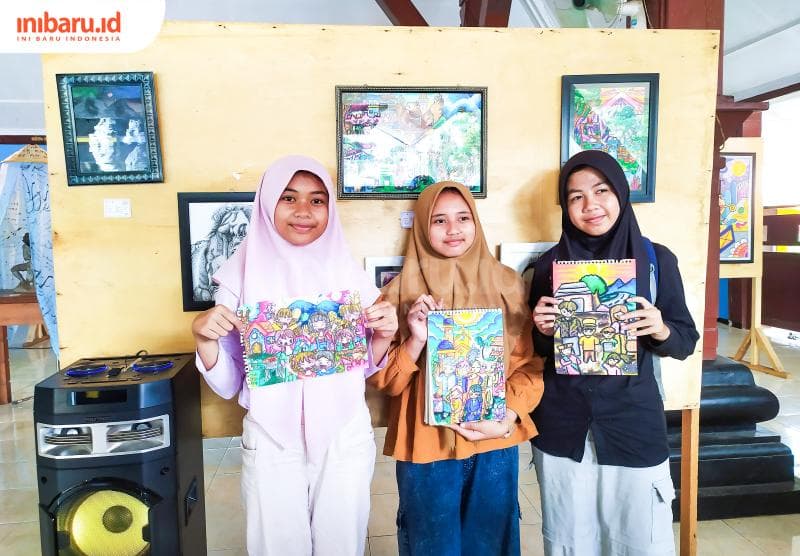 Hasil karya pelajar SMPN 1 Tayu saat mengikuti acara melukis bersama para seniman Pati. (Inibaru.id/ Rizki Arganingsih)