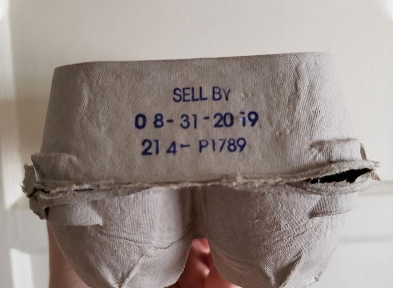 Saat hendak membeli telur di supermarket, tanggal kedaluwarsa ini biasanya tercantum di kotak atau di cangkang telur tersebut. Tanggal kadaluwarsa biasanya hanya berjarak 30 hari dari saat telur itu dikemas. Semakin mendekati tanggalnya, semakin kurang segar telur tersebut
