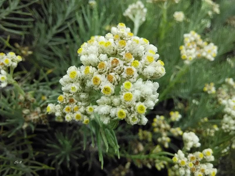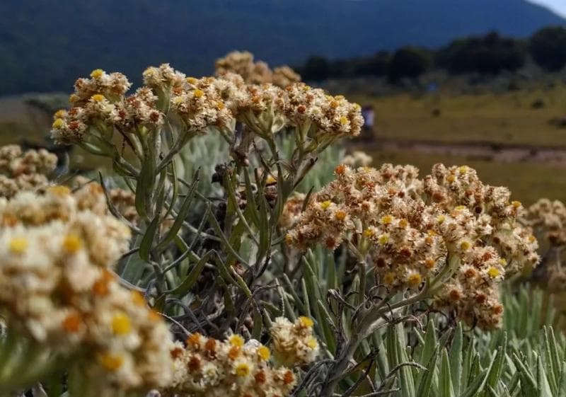 Anphalis Javanica atau yang lebih akrab disebut dengan edelweiss Jawa memiliki mahkota yang berbentuk dari ratusan kuncup bunga kecil bulat dan nggak runcing yang berwarna putih. Di tengahnya terdapat “kepala bunga” yang berwarna kuning.