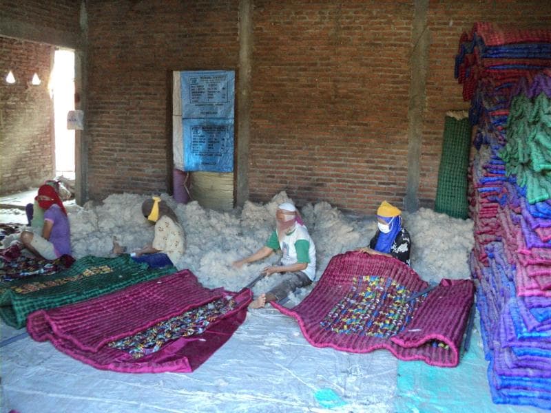 “(Harga kapuk yang mahal) itu menyebabkan modal para perajin naik. Untuk menyiasati agar modalnya pas, para perajin mencampur kapuk dengan limbah kapas dari pabrik tenun,” keluh Supeno.