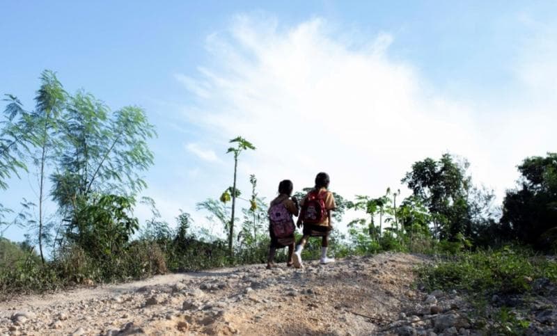 Banyak anak sekolah di Indonesia yang harus menempuh perjalanan jauh menuju sekolah. (yappika-actionaid)