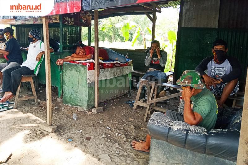 Para lelaki yang rerata berumur paruh baya ini mengaku tengah menunggu pekerjaan dari beberapa pabrik yang berada di sekitar tempat mereka berkumpul tersebut. Mereka mengaku terpaksa keluar rumah dan bersama-sama menunggu pekerjaan datang meski dengan cara berkerumun. Menurut salah seorang dari mereka, dalam sehari gubuk tersebut bisa dipenuhi dengan 15 orang.