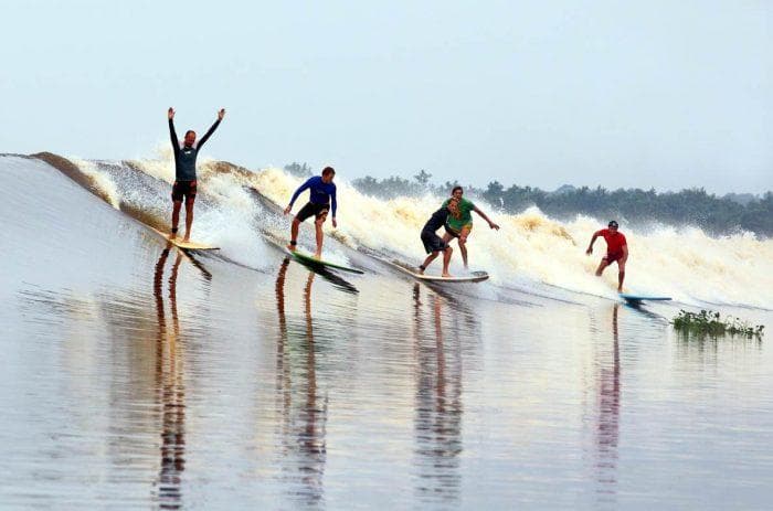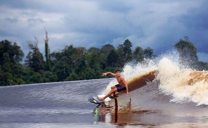 Inibaru.id - Bono adalah sebuah fenonema ombak bergulung-gulung yang ada di Sungai Kampar, Kabupaten Pelalawan, Riau. Ombak ini sangat masyhur seantero dunia dan jadi buruan para peselancar. Mereka ingin menikmati sensasi menunggangi ombak di sungai dengan kecepatan rata-rata 40 km per jam.