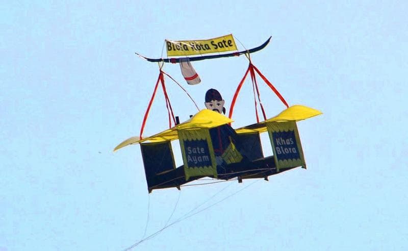 Inibaru.id - Ratusan motif layang-layang hias terbang menghiasi langit Blora, mulai dari layangan bapangan hingga layangan tiga dimensi (3D). Motifnya pun sangat bervariatif, antara lain motif dokar, gerobak lontong, gerobak bakso, kapal, tokoh pewayangan, Burung Garuda, bahkan ada juga layangan motif karikatur Bupati Blora, Arief Rohman.