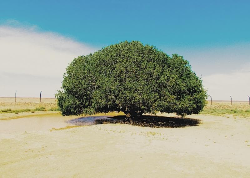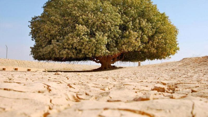 Sekitar 150 km dari Amman, Ibu Kota Yordania, ada sebuah pohon yang sangat nggak biasa. Bagaimana nggak, di sekeliling pohon besar dan berdaun rimbun ini, terkesan panas dan gersang. Logikanya, bagaimana bisa ada sebuah pohon berukuran besar dan berdaun hijau hidup di lingkungan seperti ini.
