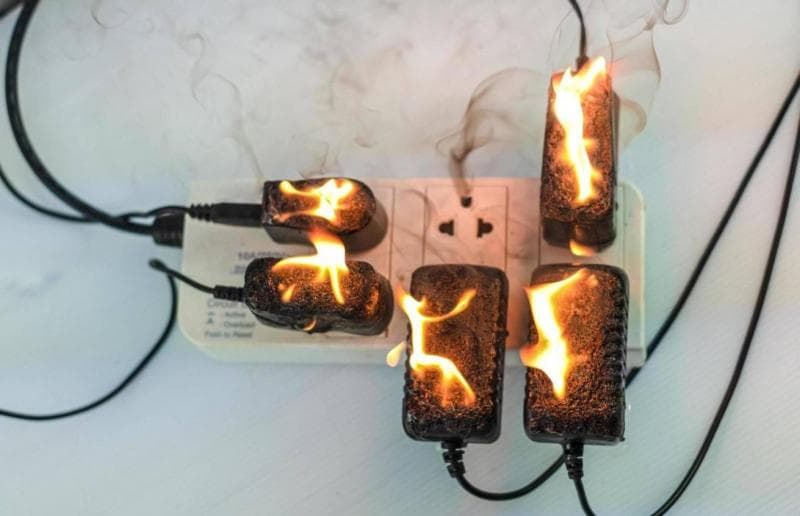 Saat kamu menumpuk colokan T dan membebaninya dengan banyak peralatan elektronik seperti televisi, kipas angin, computer, charger ponsel, dan lain-lain, maka akan muncul suhu yang sangat panas pada colokan dinding. Jika hal ini terus berlangsung dalam waktu lama, maka suhu panas tersebut pada akhirnya akan membuat colokan meleleh dan berimbas pada korsleting listrik.