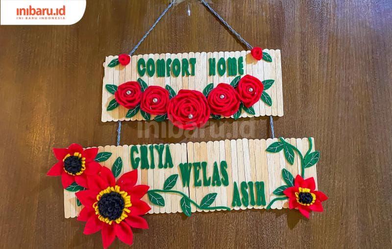 Salah satu kerajinan tangan yang tertempel di pintu masuk Griya Welas Asih. (Inibaru.id/Kharisma Ghana Tawakal)
