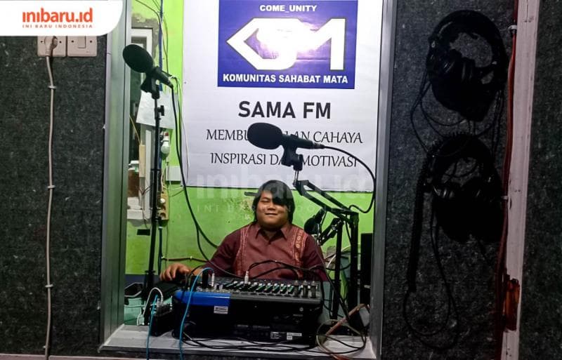 Amin Hambali, anggota Komunitas Sahabat Mata, saat berada di ruang siaran radio. (Inibaru.id/ Fitroh Nurikhsan)