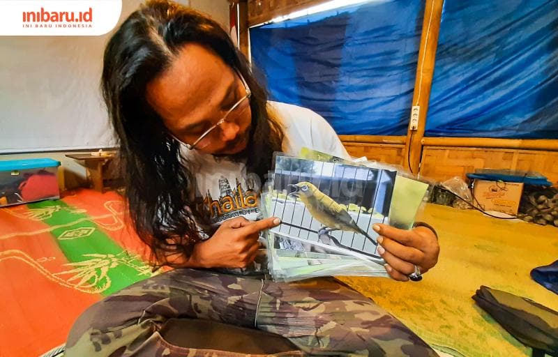 Setyawan Rahayu atau yang akrab disapa Wawan sedang memperlihatkan foto burung Pleci Mata Putih, satwa khas Pegunungan Muria yang terancam punah. (Inibaru.id/ Imam Khanafi)