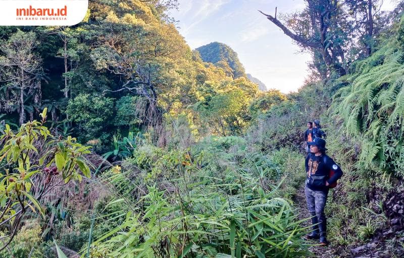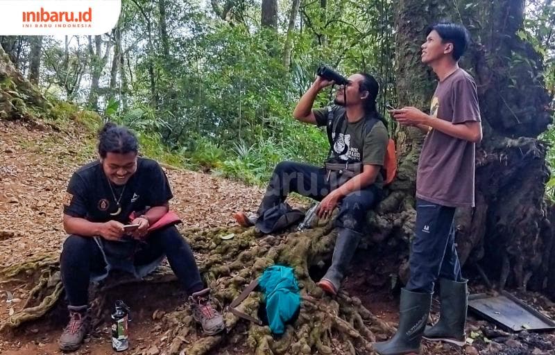 Wawan dengan teman-teman dari Peka Muria tengah melakukan pengamatn burung dan pendataan di Pegunungan Muria (Inibaru.id/ Imam Khanafi)