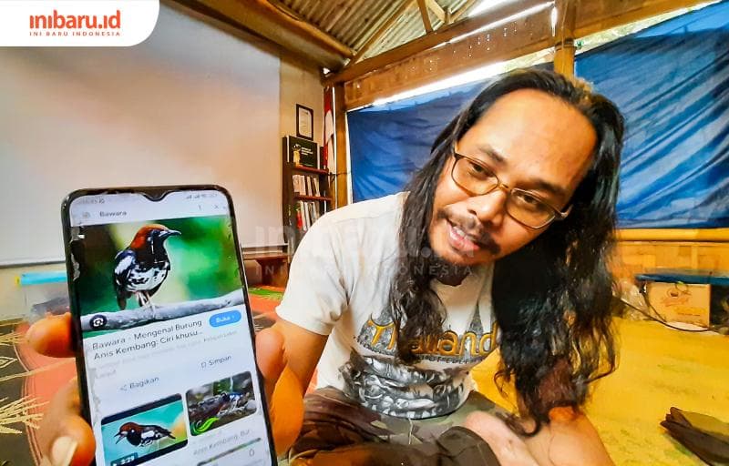 Wawan memperlihatkan jenis burung anis kembang, anis merah, atau plontang, jenis burung yang terancam menghilang dari Pegunungan Muria. (Inibari.id/ Imam Khanafi)