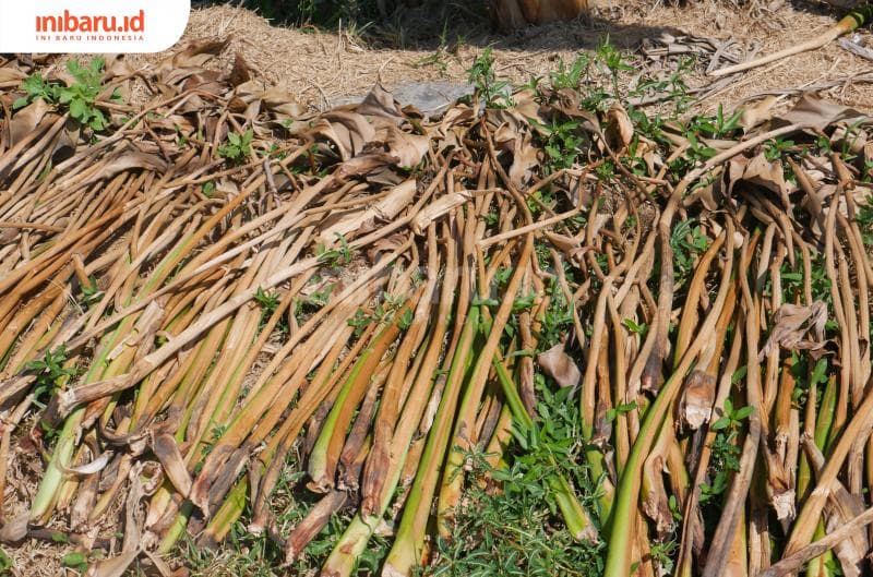 Eceng gondok yang didapatkan dari sungai lalu dikeringkan selama sepuluh hari agar bisa dijual ke pengepul. (Inibaru.id/ Sekarwati)