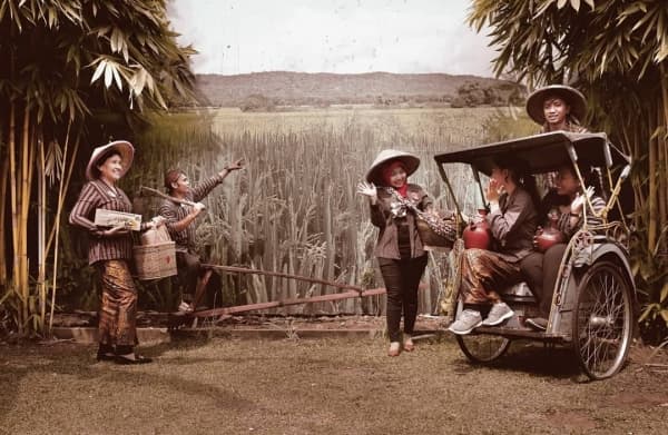 Tiba di sana, kamu bakal disambut bangunan tua yang mengingatkanmu pada rumah-rumah peninggalan Belanda. Sepasang patung laki-laki dan perempuan dipajang di samping pintu masuk, menguatkan interior khas Jawa.