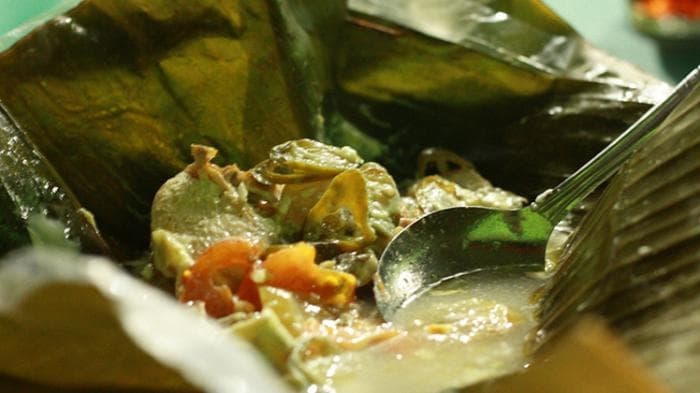 Nggak hanya enak tapi juga menyehatkan. Konsep makanan dengan memakai daun pisang, berkuah tanpa santan yang rendah kolestrol, ditambah lagi dengan irisan belimbing wuluh yang dapat menurunkan kolestrol dan juga tensi darah.