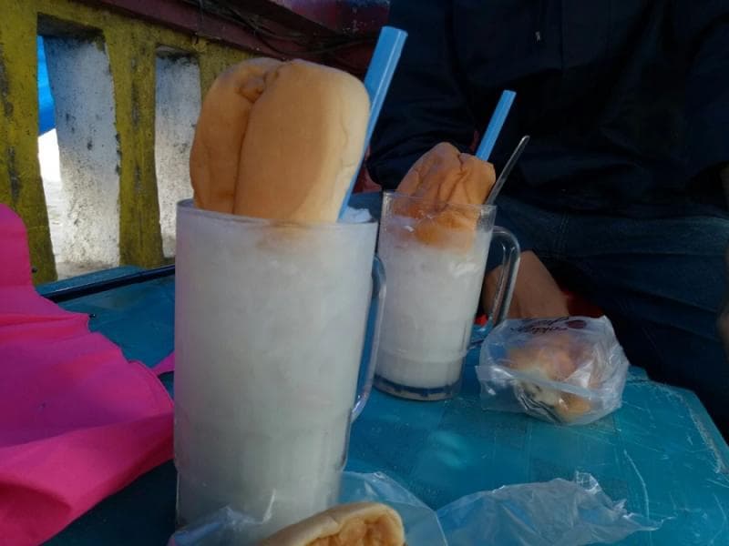 O ya, selain minuman dingin menyegarkan, setiap kali kamu memesan es gosrok di sini, yang datang nggak hanya minuman, melainkan juga sebuah roti isi cokelat. Biasanya, roti ini bisa disobek lalu dicelupkan ke dalam minuman sebelum dimakan. Meski begitu, kalau kamu nggak pengin rotinya, juga bisa bilang langsung ke Pak Sutar, lo.