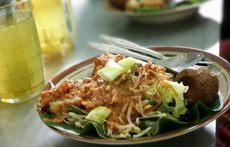 Sayuran sehat ini dipadukan dengan potongan cingur yang mirip kikil tapi terbuat dari kulit kerbau yang kemudian disiram dengan sambal kacang.