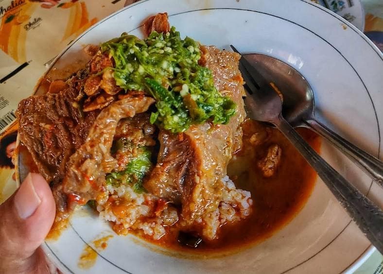 “Kalaupun sedang nggak pengin mencicipi brongkos, kadang saya juga pesan gulai kambing. Porsinya juga sama-sama melimpah. Soal rasa, sama-sama istimewa,” lanjutnya.