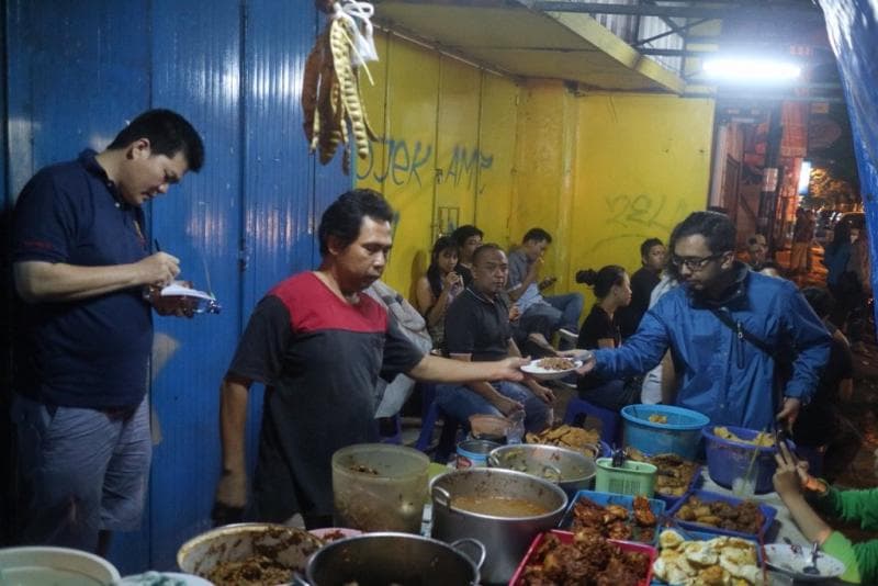 Meski buka malam, nasi campur teri Gejayan selalu ramai pembeli. (Saluranberitayogya.wordpress/Mario Fernando)